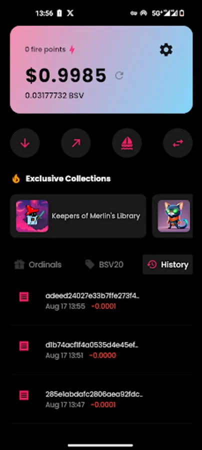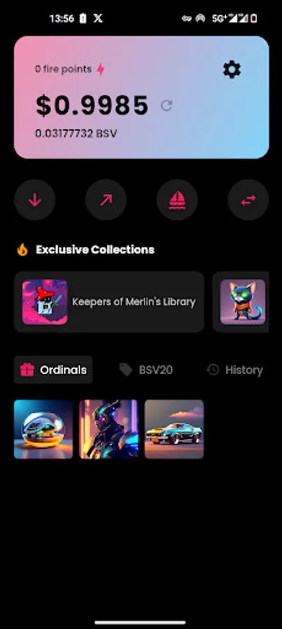 Discover the power of FireSats Wallet, a comprehensive custodial Bitcoin SV (BSV) wallet that goes beyond the ordinary. Seamlessly manage your BSV holdings while exploring the exciting world of NFTs. With FireSats Wallet, you're not just getting a secure wallet; you're gaining access to an innovative NFT marketplace, a global orderbook for NFT trading, feeless deposit and withdrawal options, intuitive ordinals-based deposit transfers, all wrapped in a user-friendly design, without the hassle of KYC requirements.