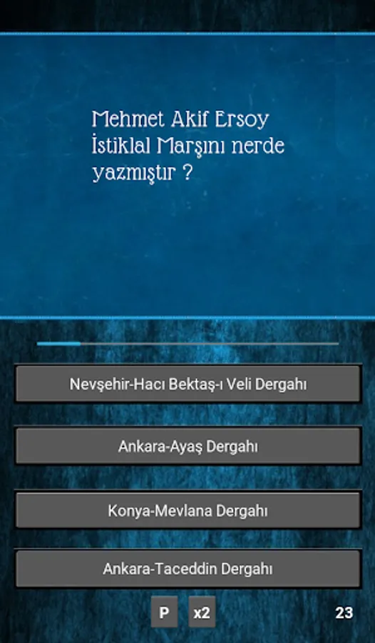A general culture contest where you try to know 50 questions with different combinations of questions in many categories.