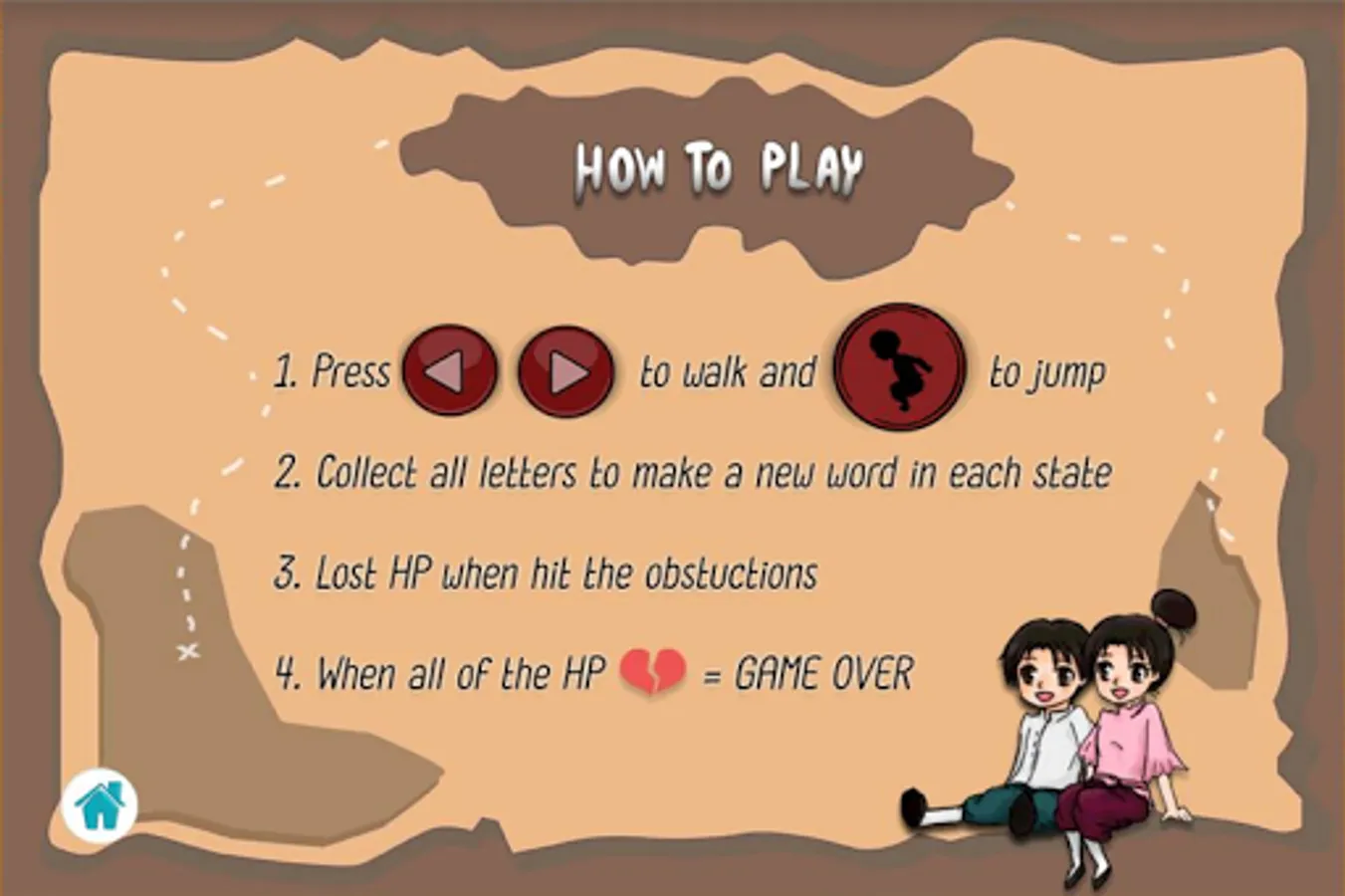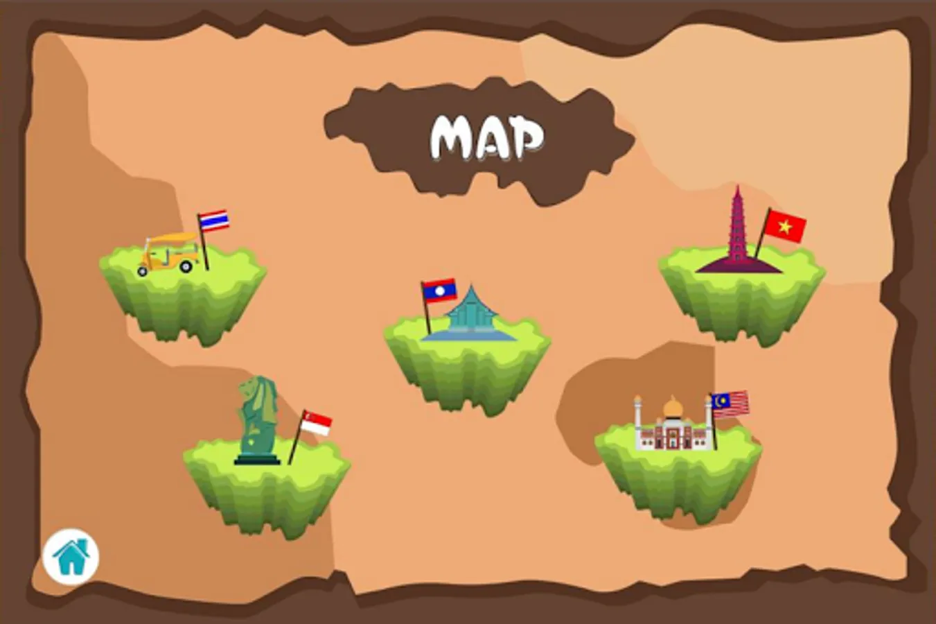 The game teaches basic vocabulary of countries in the region to gain knowledge and fun to learn and remember the word even more.