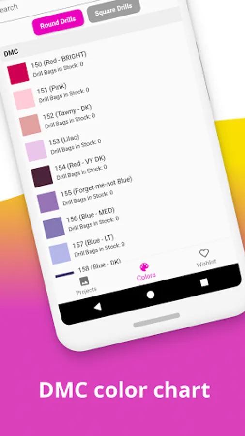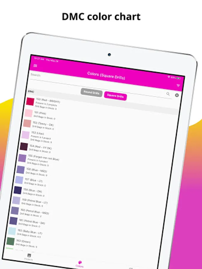 Moreover, the GemsFlow app is the perfect way to keep track of the diamond drills you have in stock. Using the app you can quickly check which colored drills are left from other projects in case you run short of a certain color on another picture.