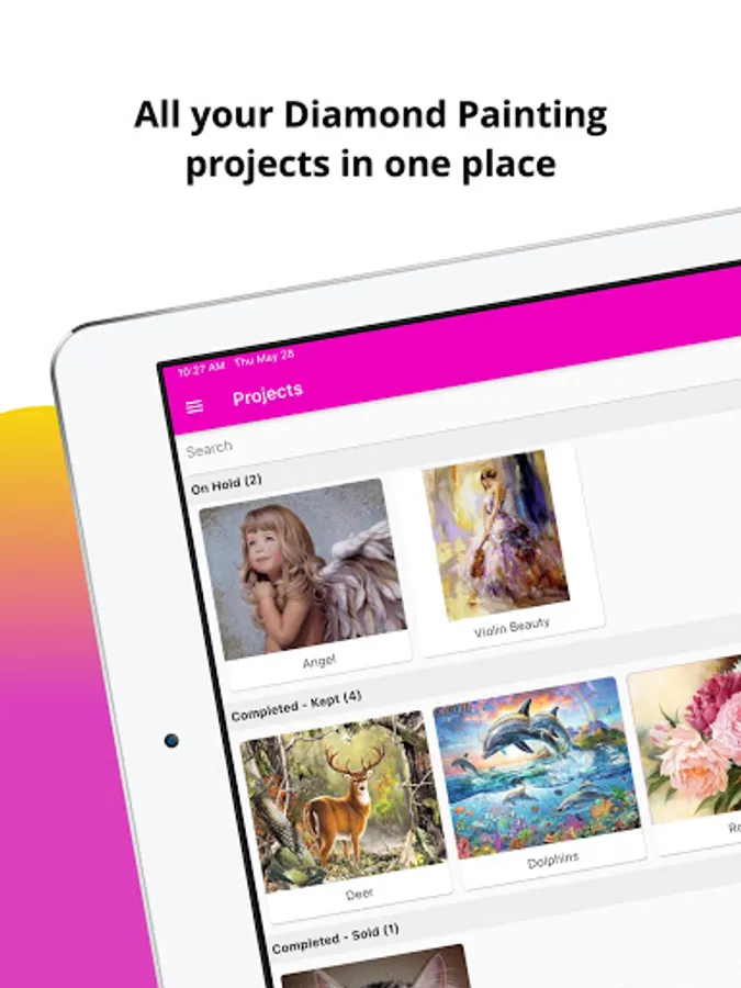 GemsFlow is about all your diamond paintings in one place. Keep track of your masterpieces - see at a glance what paintings you have on hand, which paintings haven’t come in yet, and which ones you’re working on.