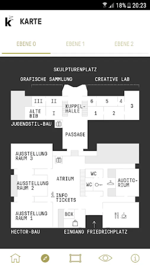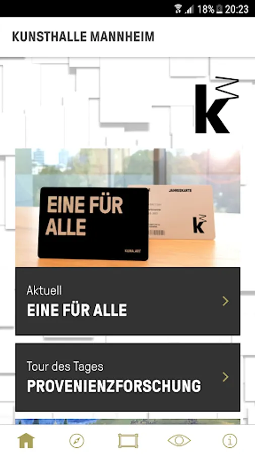 The KuMa app is your multimedia guide through the Kunsthalle Mannheim. With the app, you always know which exhibitions are running and which works from the museum's collection are on display. You can find out about current events and receive free access to background information and all audio guides for the exhibitions and collection areas.