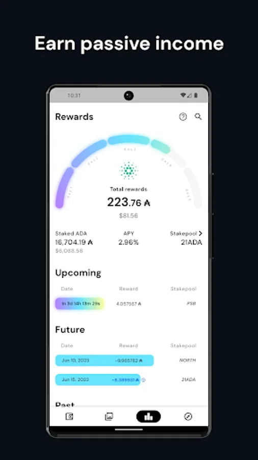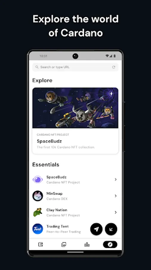 VESPR focuses on providing lightning-fast speed and unmatched reliability, allowing you to make transactions anytime, anywhere. Send, store, and receive Cardano native tokens, showcase your NFT collection, connect to dApps, earn passive income, and carry the world of Cardano with you wherever you go.