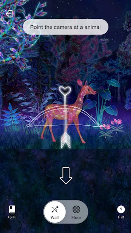 Using the app's camera, aim at the animals on the wall and throw light arrows at them, or set light nets around their feet to capture them.