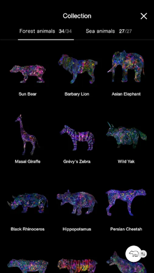 If you swipe the captured animals away, they are released and reappear in the artwork space."