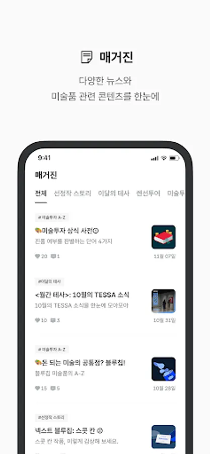 ■ TESSA breaks down the high entry barriers of the existing art asset market, which was difficult for the public to access due to high prices and offline markets, eliminating the price burden and enabling anyone to easily and safely acquire art as an asset through 'digital split ownership' with accessibility and liquidity. It provides an online art-tech platform that can be owned and transparently transferred/acquired.