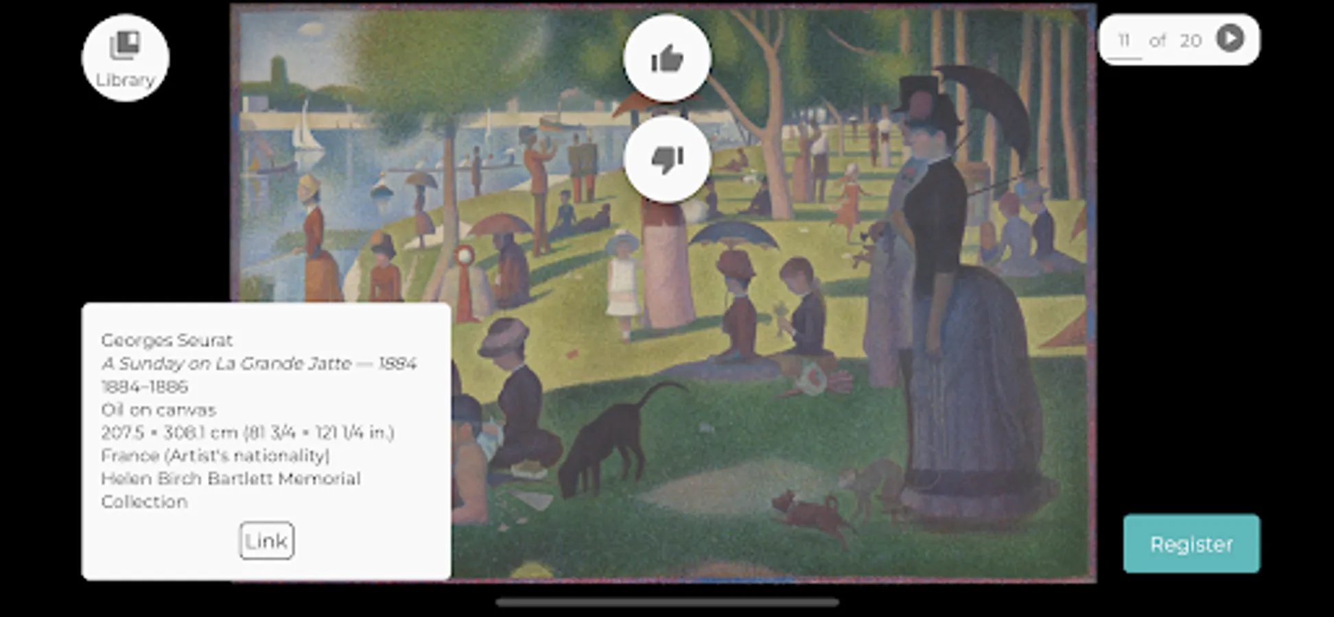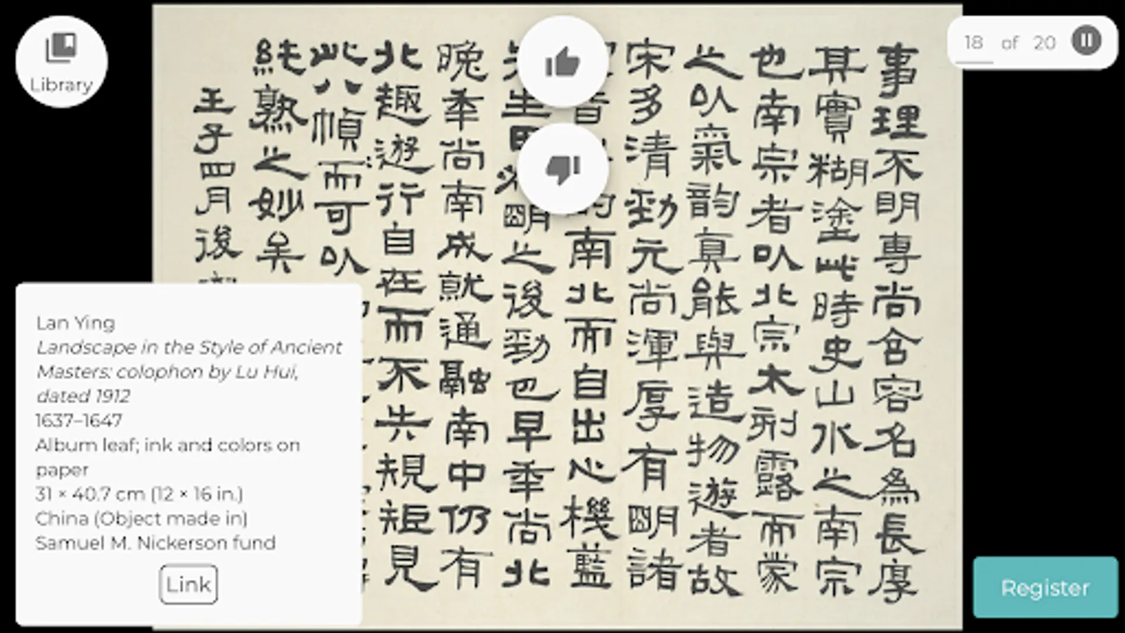 Individuals can view fine arts & cultural media images in personalised curated stream.