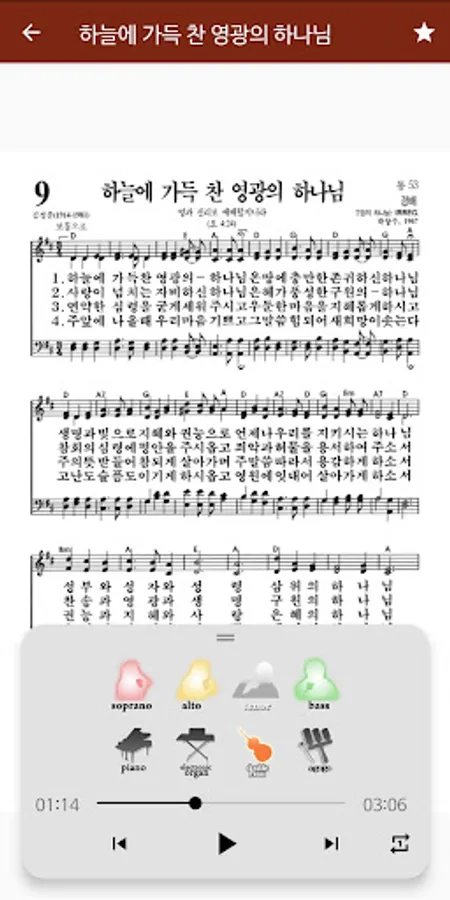 3. Support for playing MIDI performances of all four hymns (soprano, alto, tenor, bass)