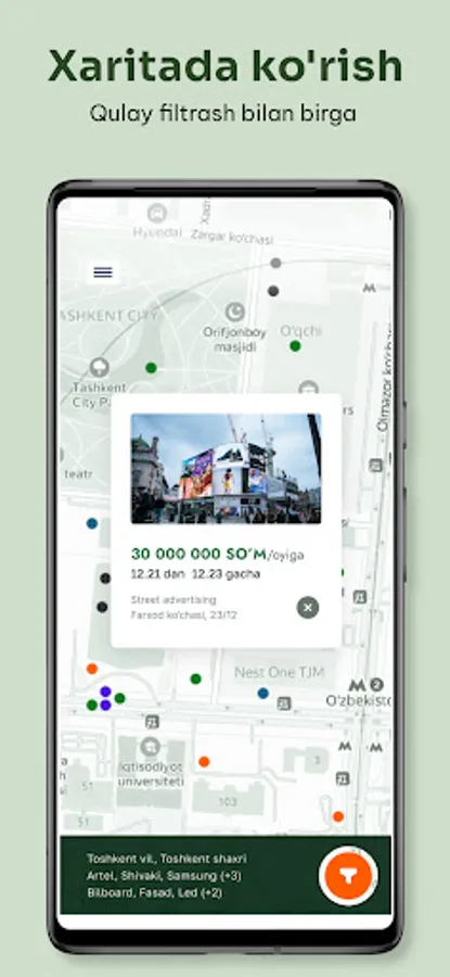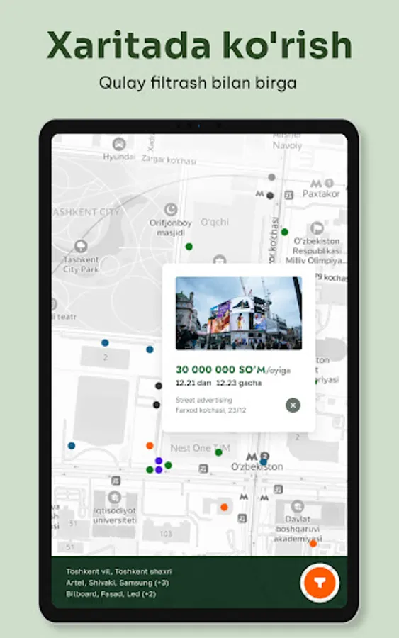 An app for Artel group that provides info about advertisement objects: location, types of object, price etc