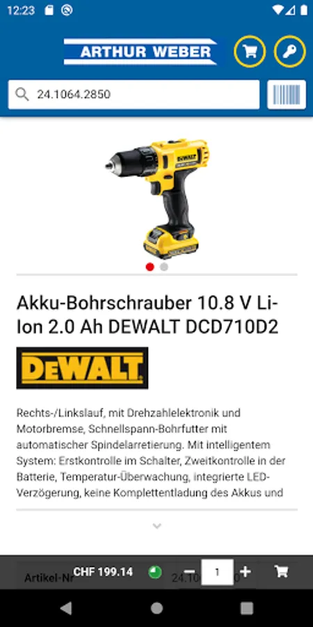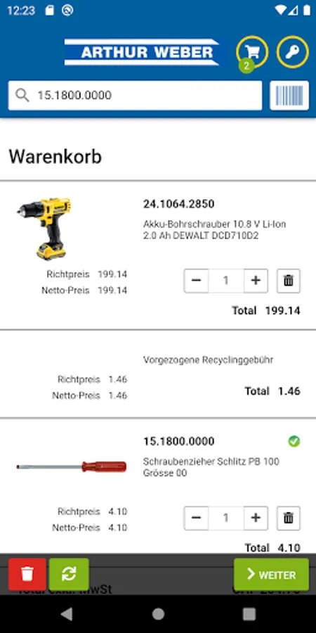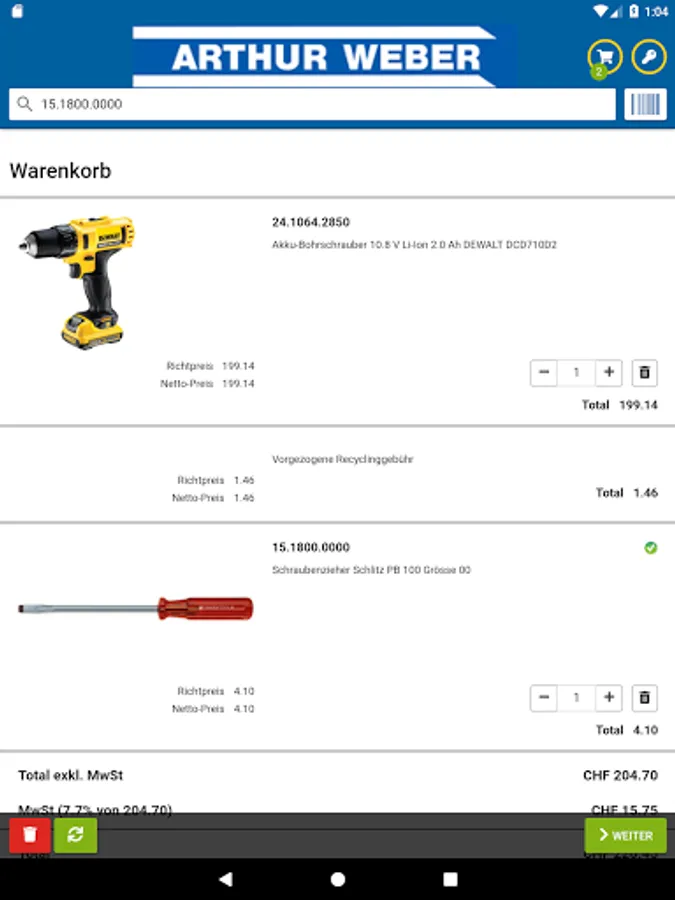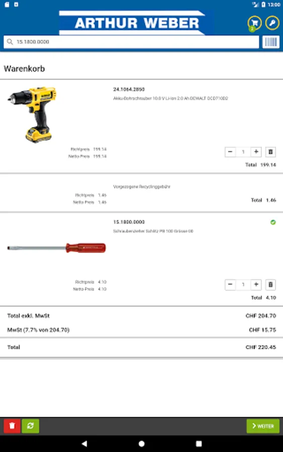AWG net is a modern and fast app with many functionalities. Whether through the product range, the search function or by camera scan, the desired products can be found and ordered very easily.