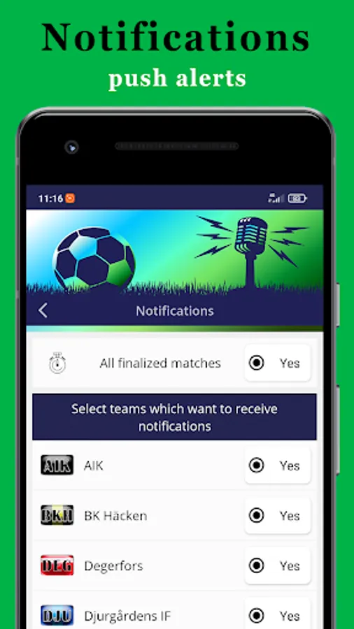 ◾️ Receive PUSH notifications 📣 of the start, half-time, end of the game and goals.