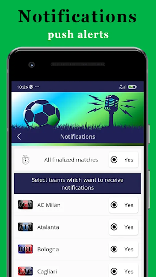 ◾️ Receive PUSH notifications 📣 of the start, half-time, end of the game and goals.