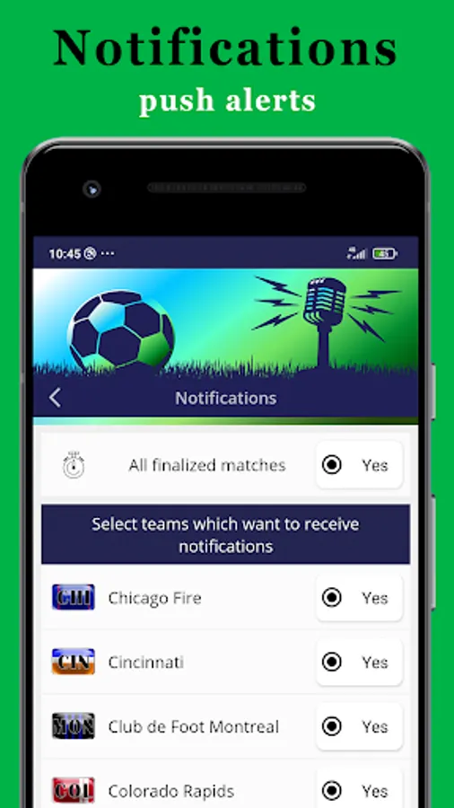 ◾️ Receive PUSH notifications 📣 of the start, half-time, end of the game and goals.