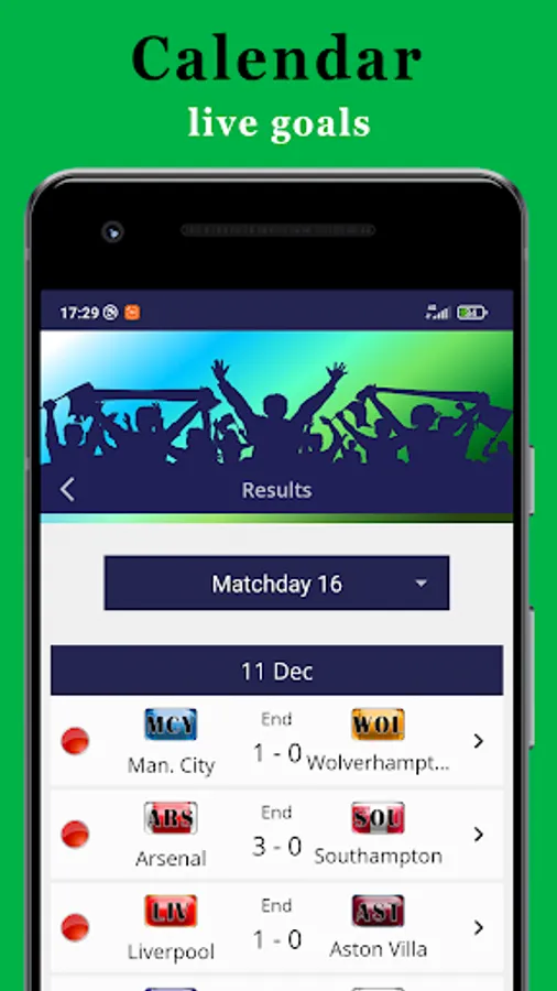 ◾️ Follow the matches minute by minute with the LIVE mode : results, goals, cards, changes, line-ups, statistics, etc.