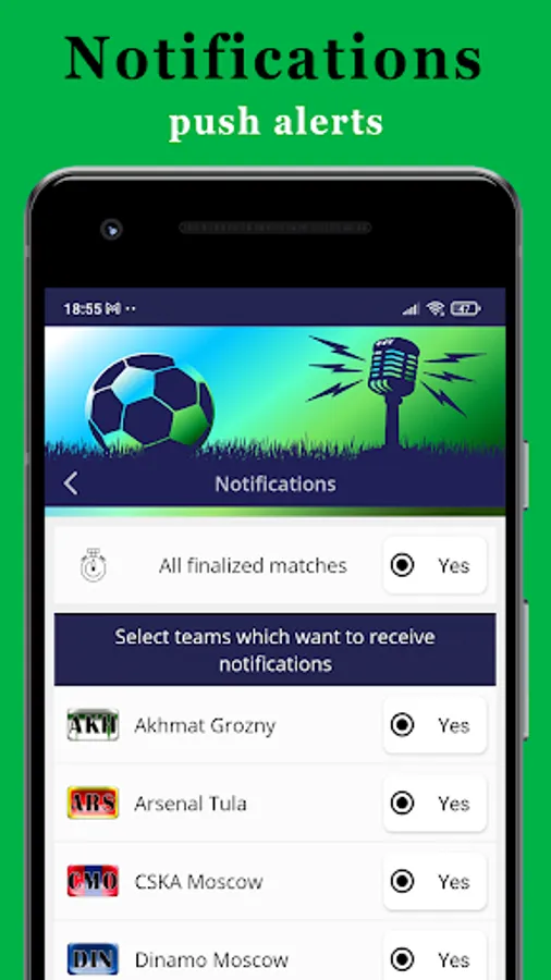 ◾️ Receive PUSH notifications 📣 of the start, half-time, end of the game and goals.
