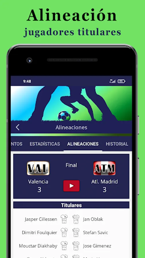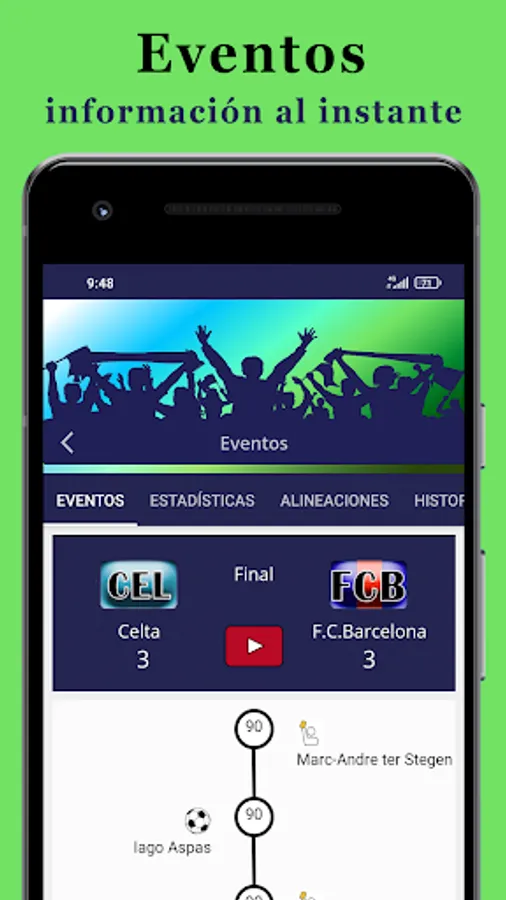 ◾️ Receive PUSH notifications 📣 of the start, half-time, end of the game and goals.