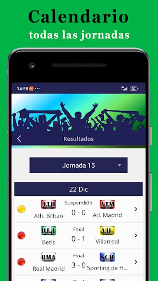 ◾️ Follow the matches minute by minute with the LIVE mode: results, goals, cards, changes, lineups, statistics, etc.