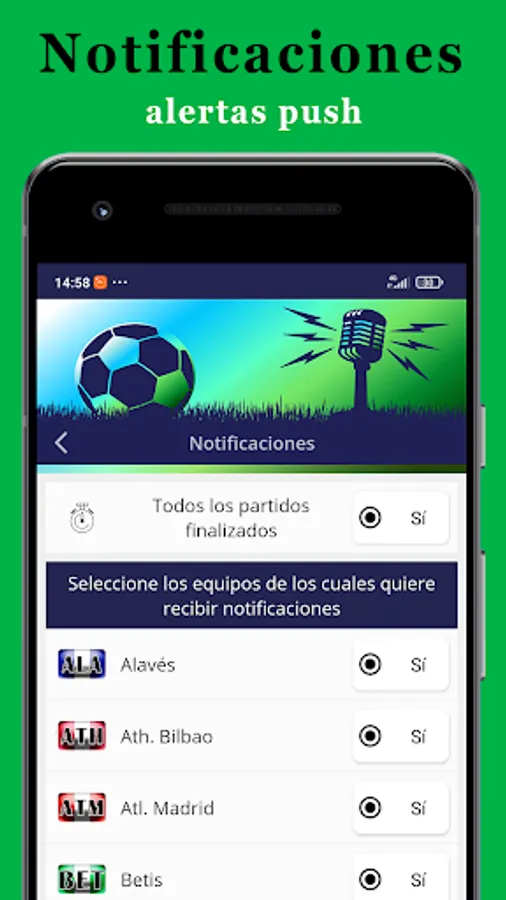 ◾️ Receive PUSH notifications 📣 of the start, rest, end of the game and goals.