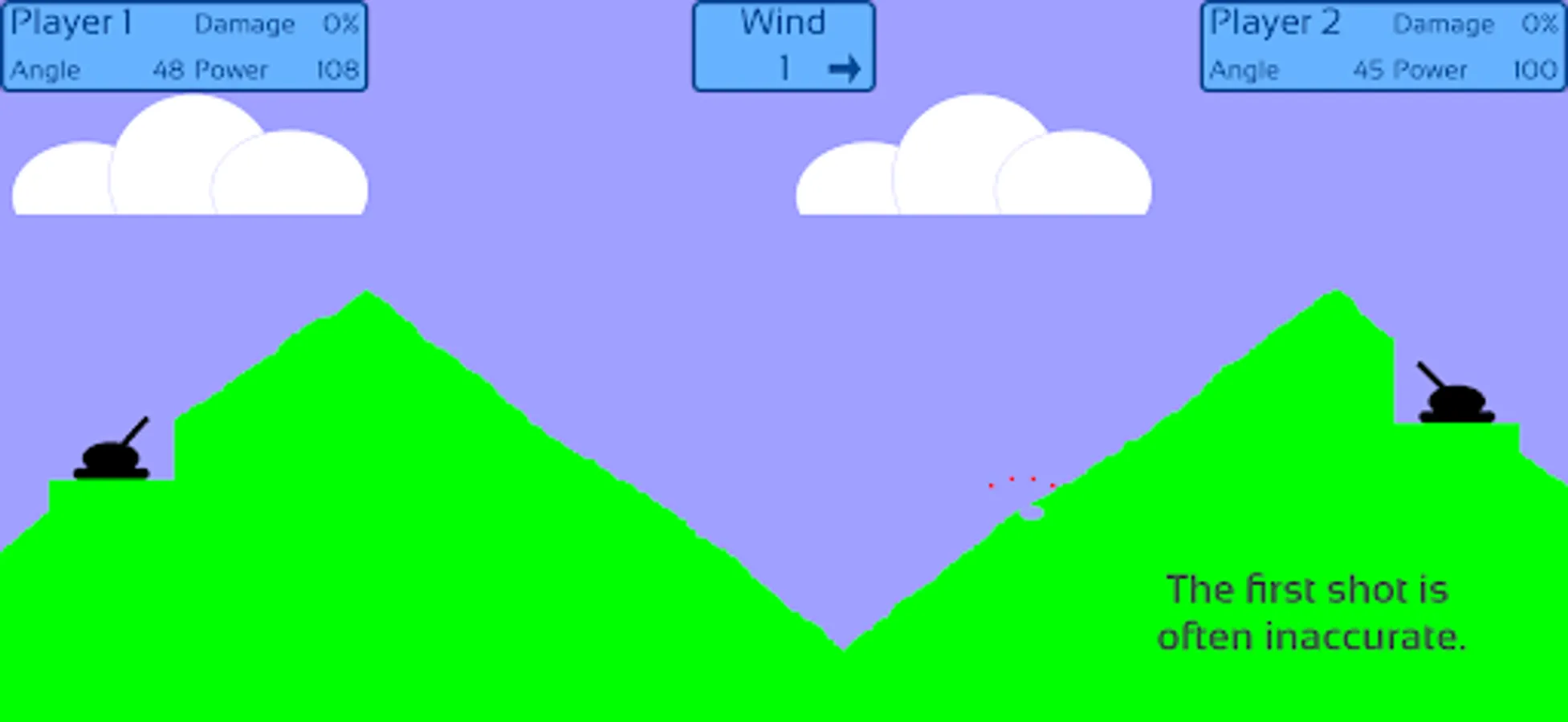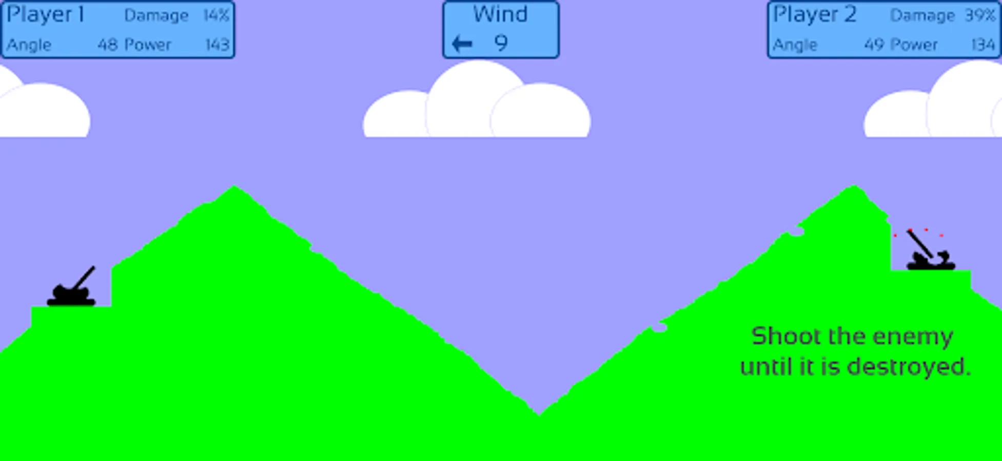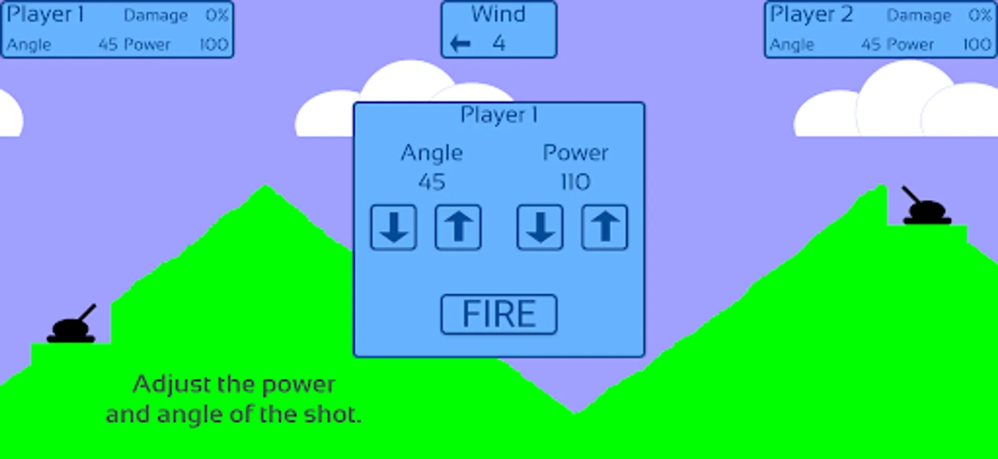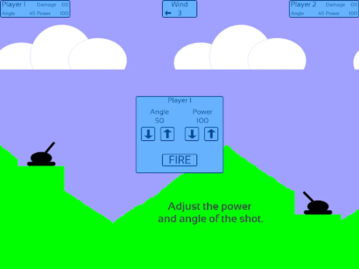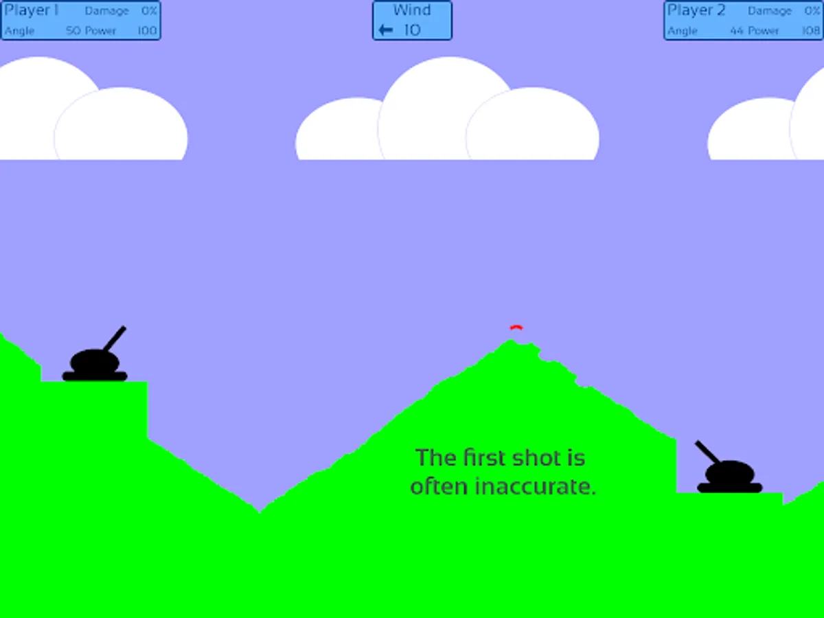 Wind direction and speed change from round to round. This affects the trajectory of the projectile. The direction and power of the wind is shown by the movement of the clouds.