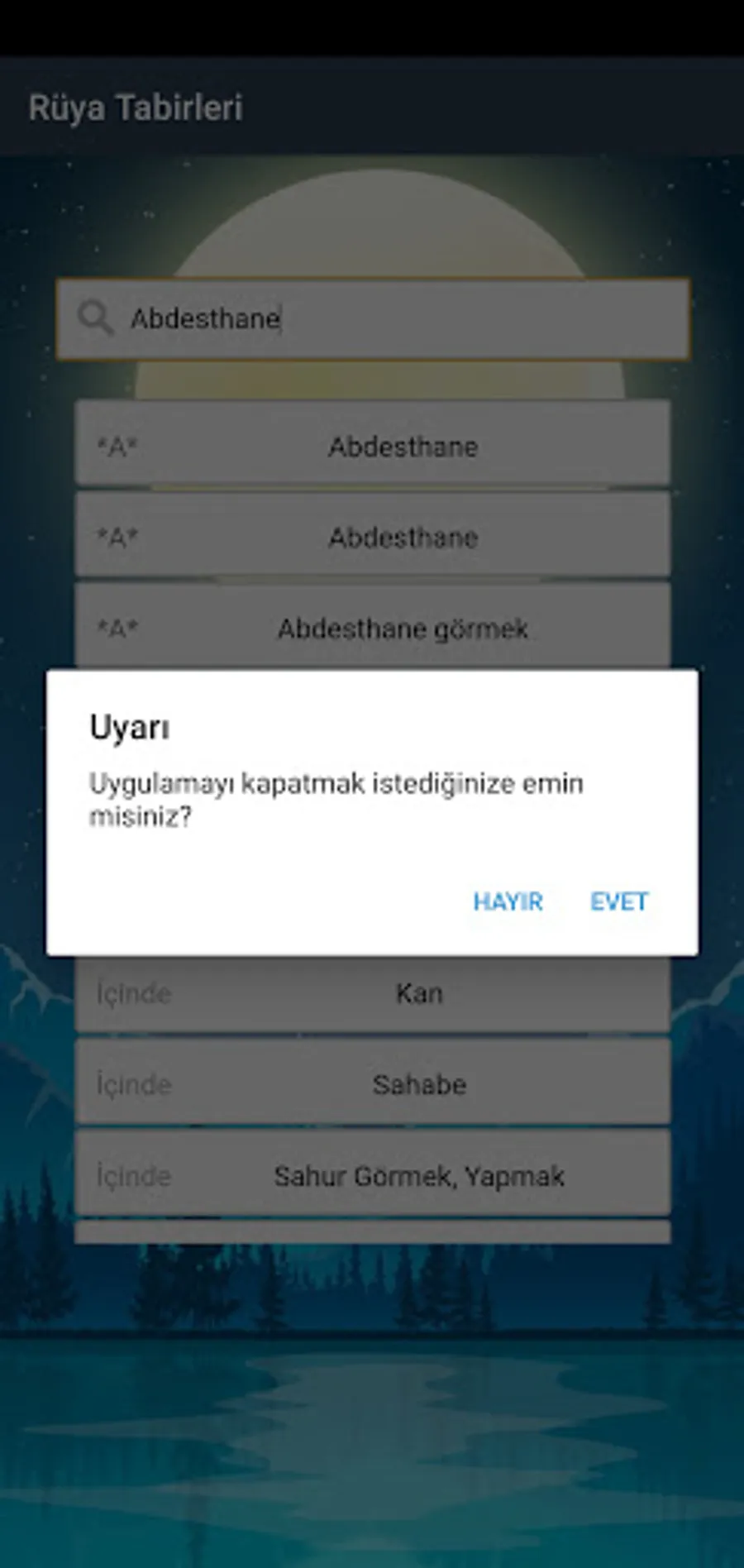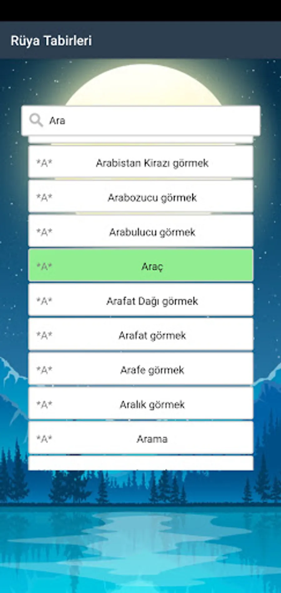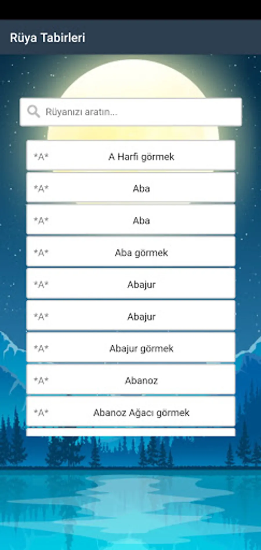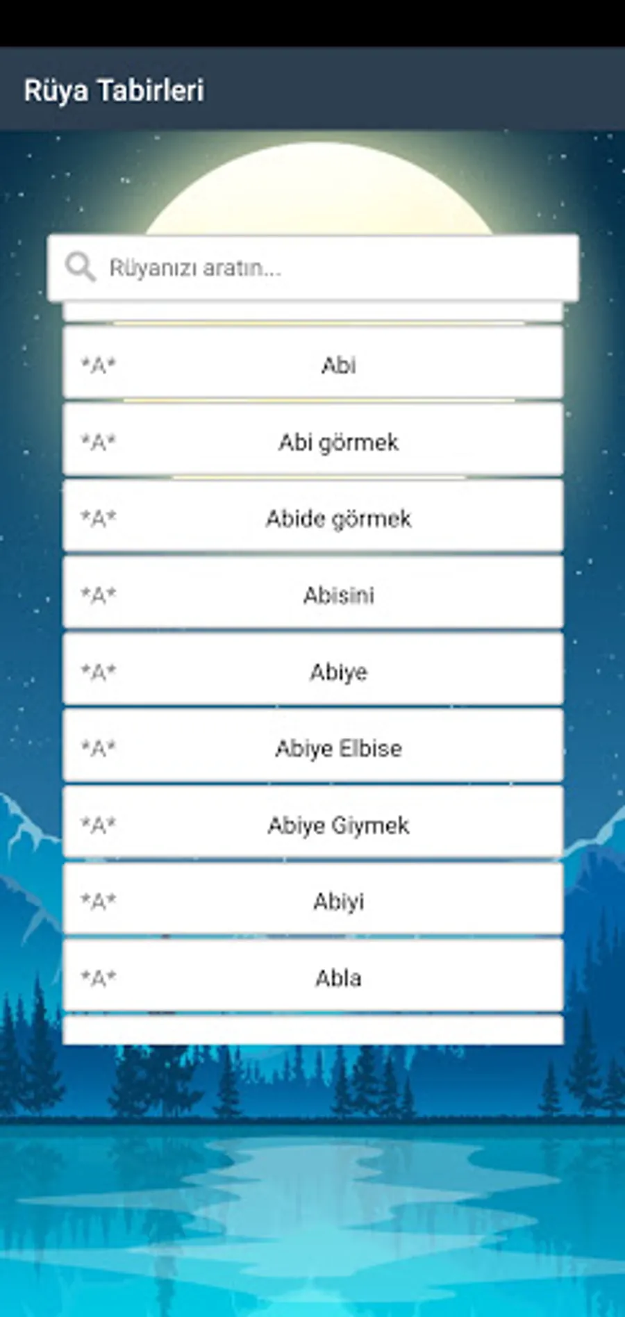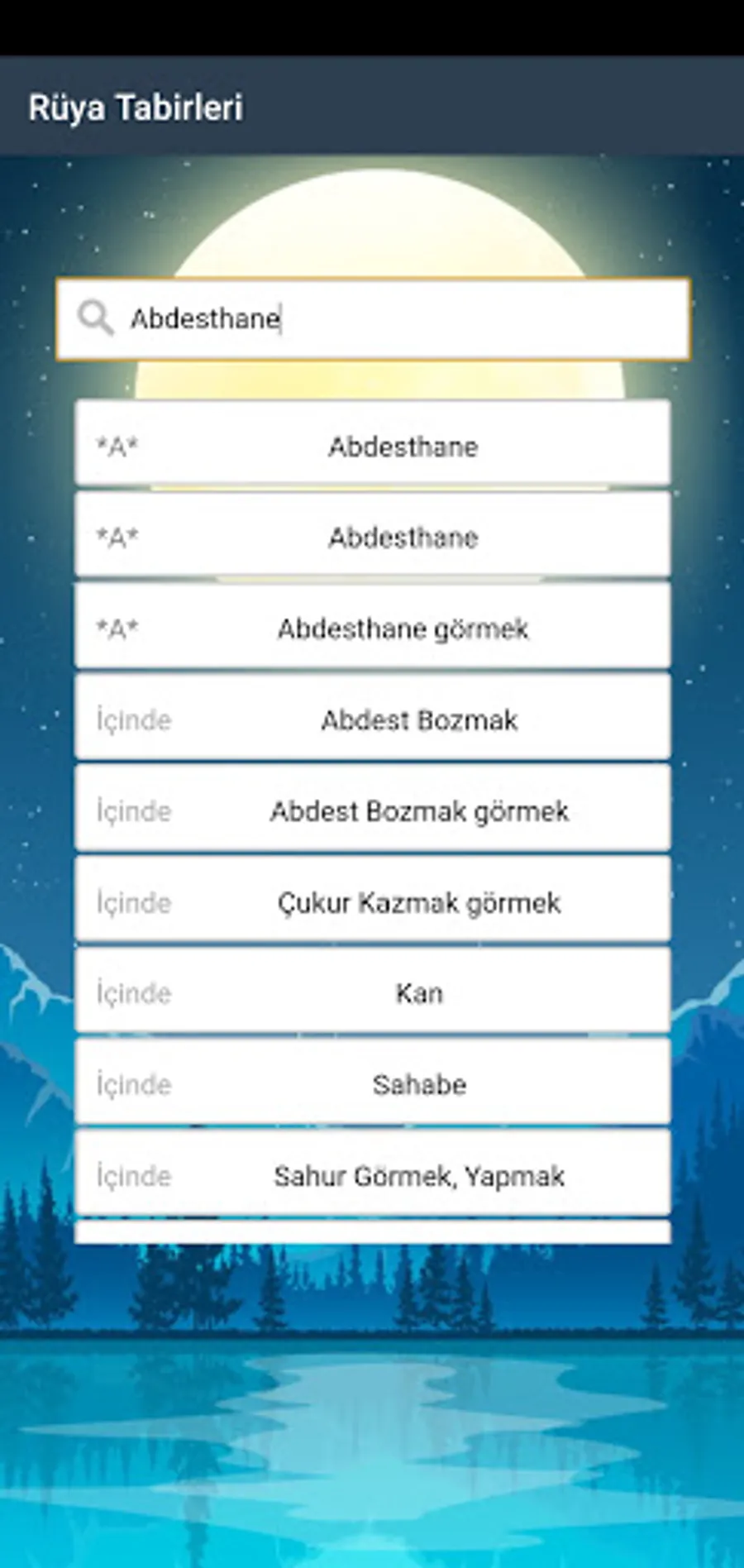Search for your dream and find out its meaning. Our application shows only 1 advertisement at the first application entry, and then no advertisement! Thanks to the detailed search feature, you will be able to see in which comments the word you searched for. We aimed to provide a fast experience.