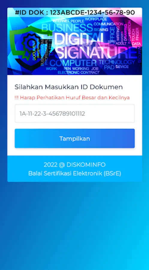 Application System for Electronic Signature (Digital Signature) certified BSrE (Electronic Certification Center) under the auspices of the National Cyber and Crypto Agency of the Republic of Indonesia.