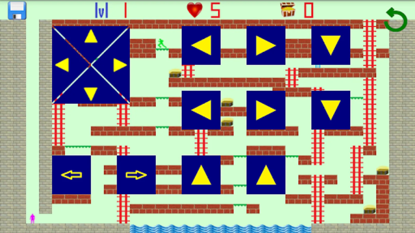 PAY ATTENTION, controls is created especially for portable devices and object movement always does full step on each try, also, when movement is started to appropriated direction and is given another direction, man continue its movement direction an change it if is possible, in other words, if you move man right and turn up, it goes right till reach stairs and climb up.