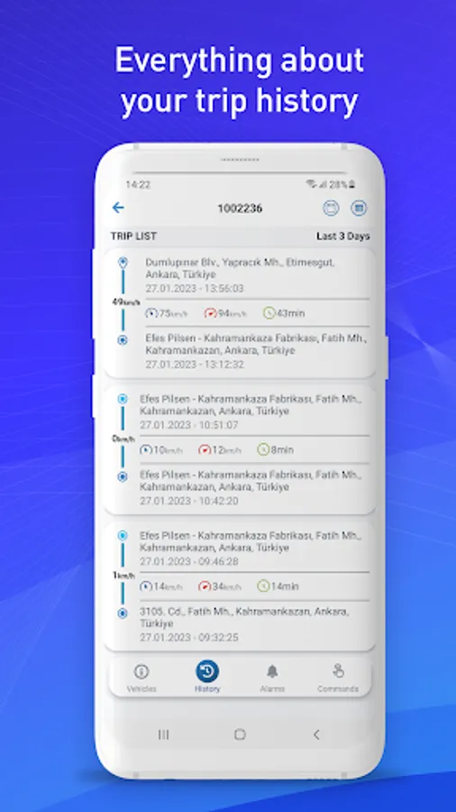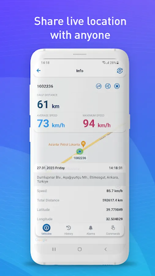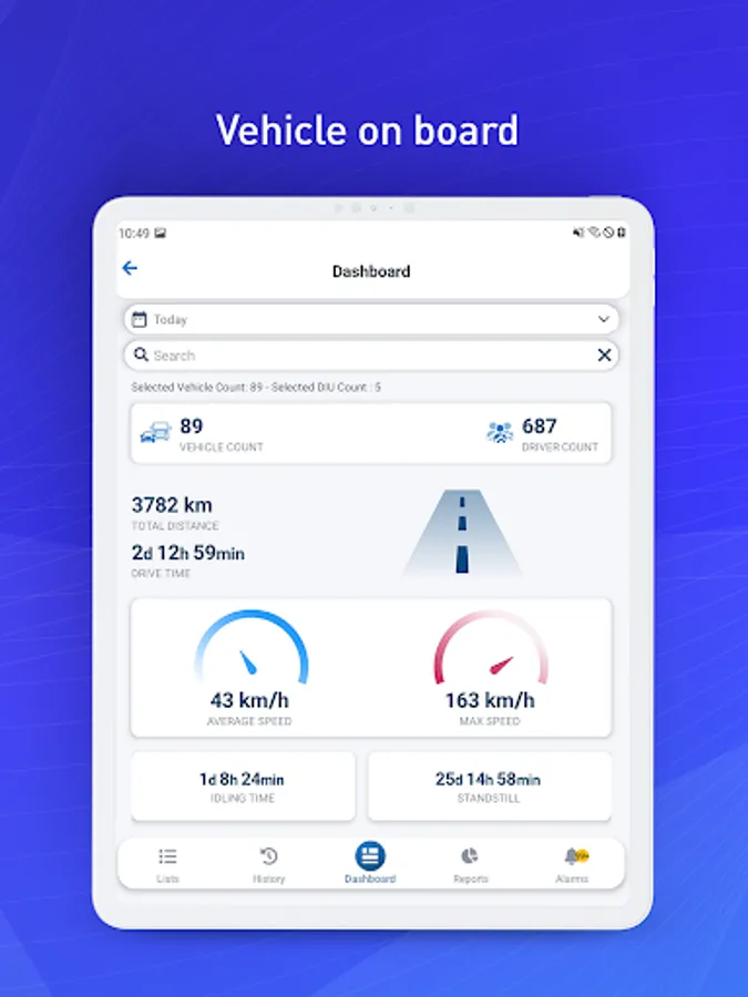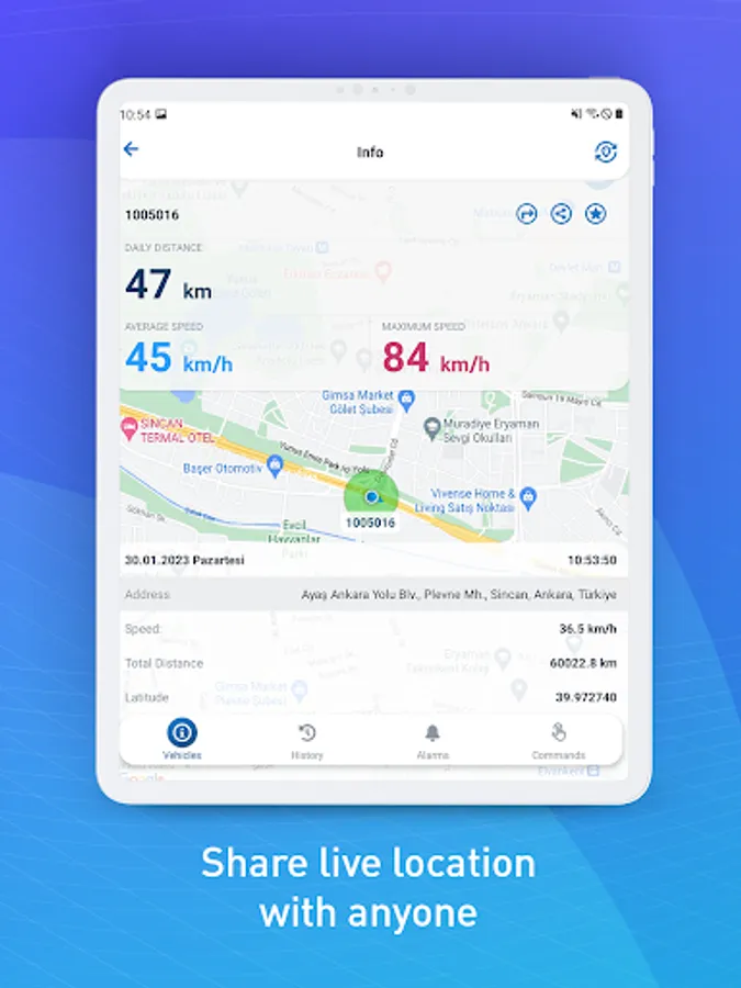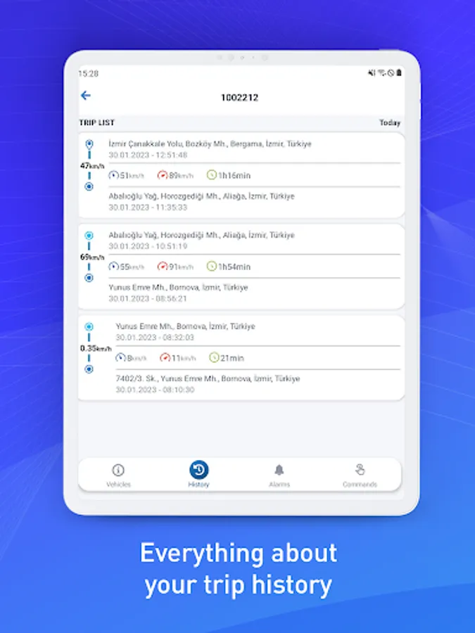 With the application, you can monitor your vehicle instantly and retrospectively, receive notifications for legal speed limit violations, save fuel, and measure and increase your efficiency with multiple different types of reports about your vehicle.