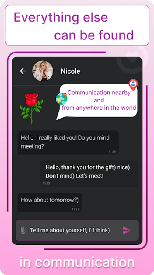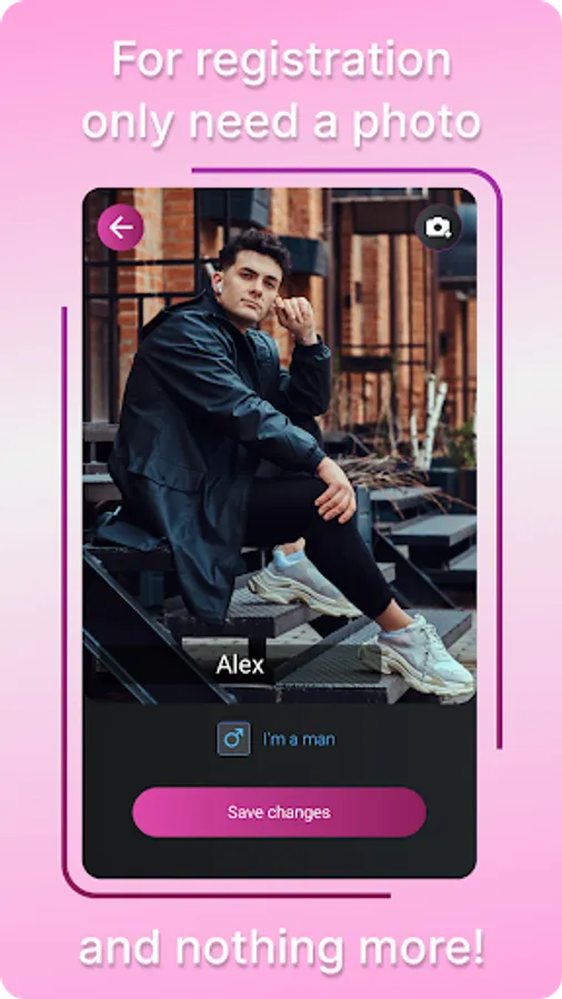 A lot of effort is not needed, just upload your photo and indicate your gender, and if you would like to get to know someone who is close to you, then there is a function for this that allows you to start chatting with those who are closest to you and will be nice to you, the artificial intelligence of our system will take care of this. We do not use age in our project, we believe that it is not important for dating and dating, the main thing is that you like each other and love fills your hearts. The moderation of your profile will be quick, the main thing is that the photo is good, that your face is clearly visible (the use of dark glasses and masks is not allowed, this will interfere with the work of the neural network), as soon as we check your photo, you will be able to interact with other users.