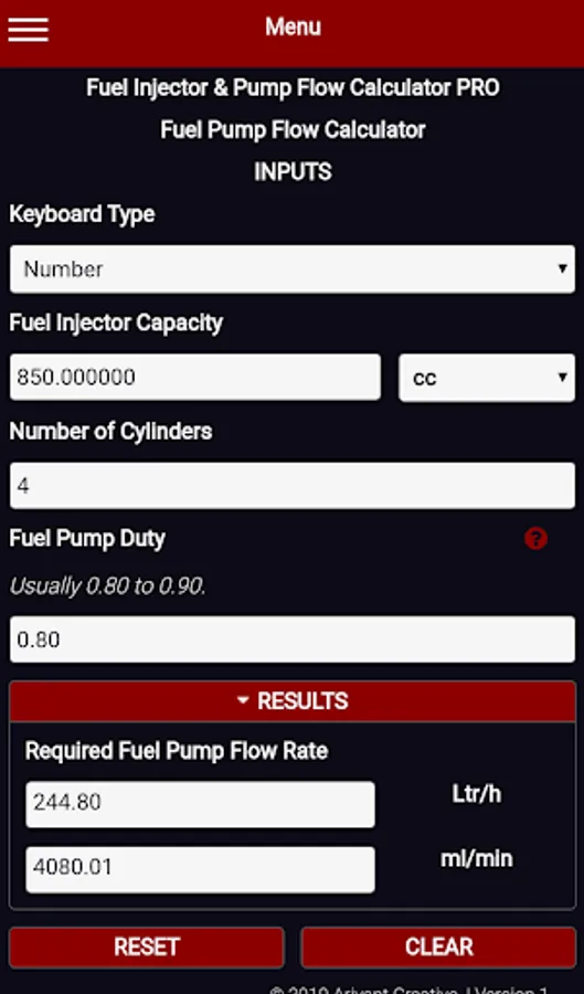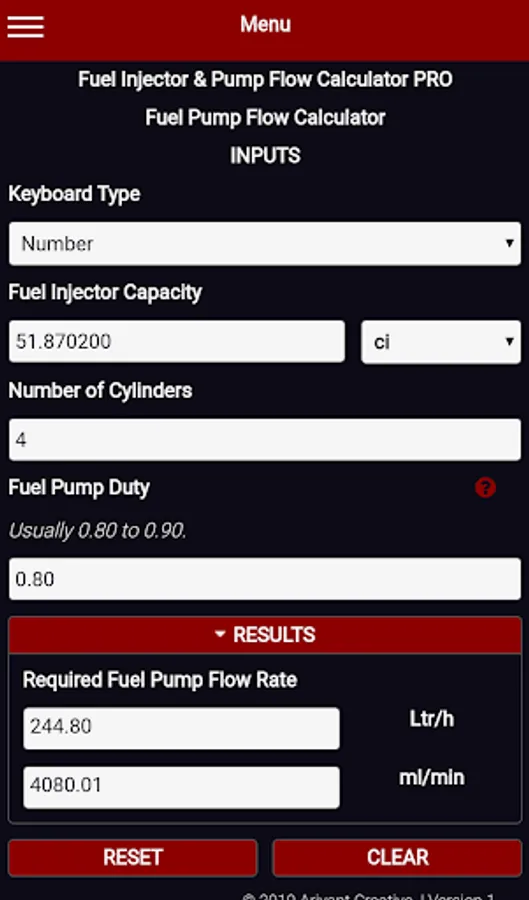 Fuel Injector & Pump Flow Calculator PRO. In this app included: