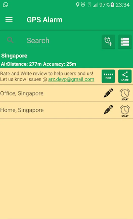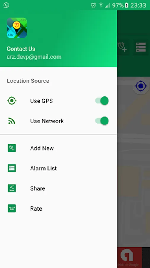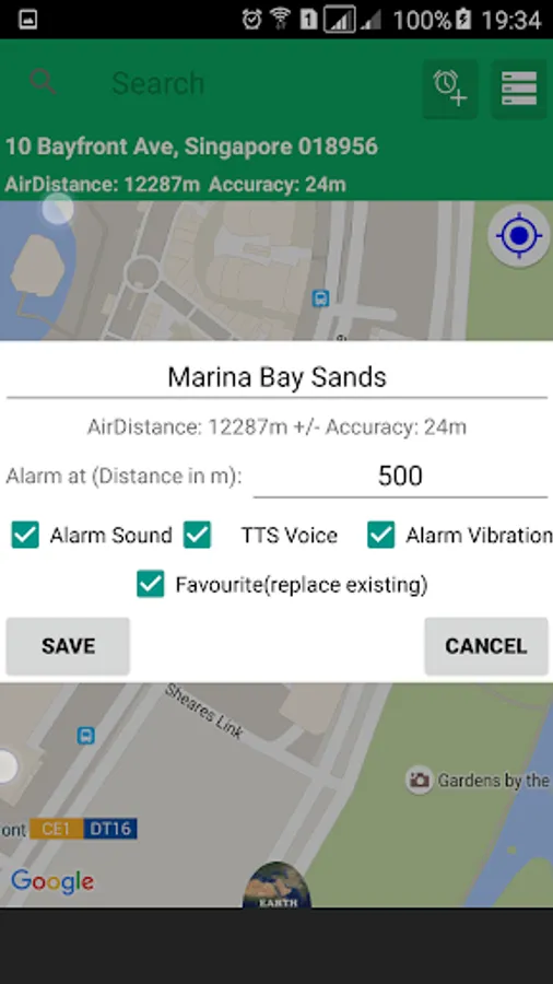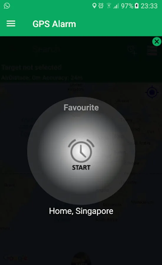 Before that what you need to do is: Select your target location from map, Add Alarm and turn on!