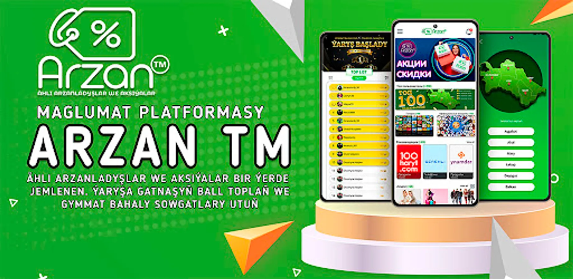 А наша главная особенность в том, что вы сами БЕСПЛАТНО можете выставлять собственные акции или скидки в Arzan.