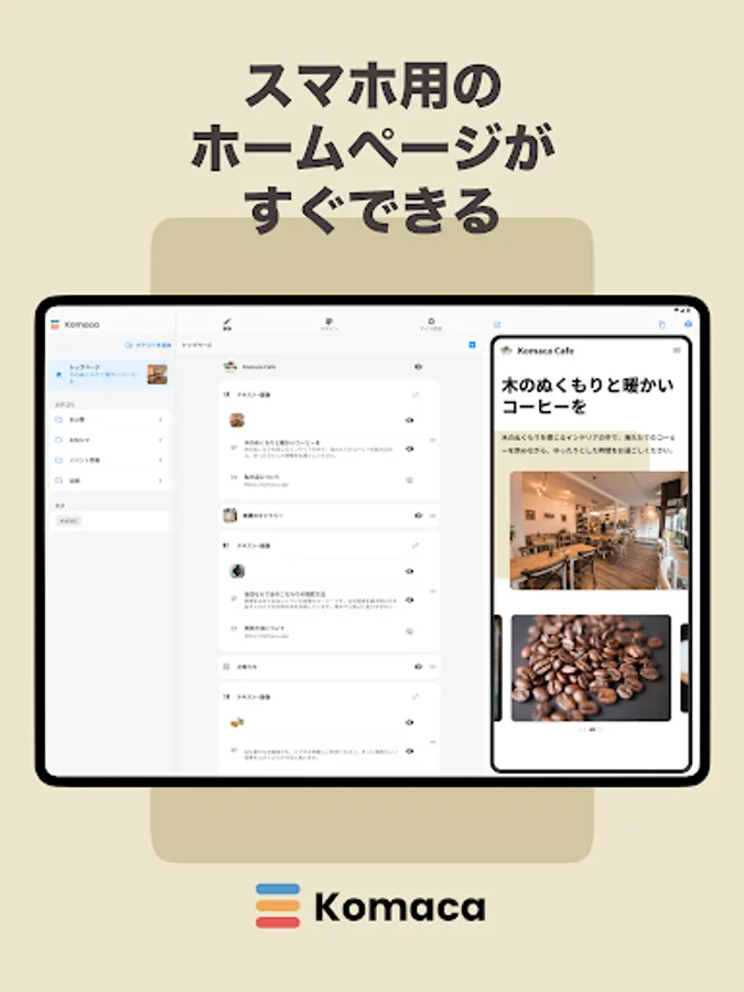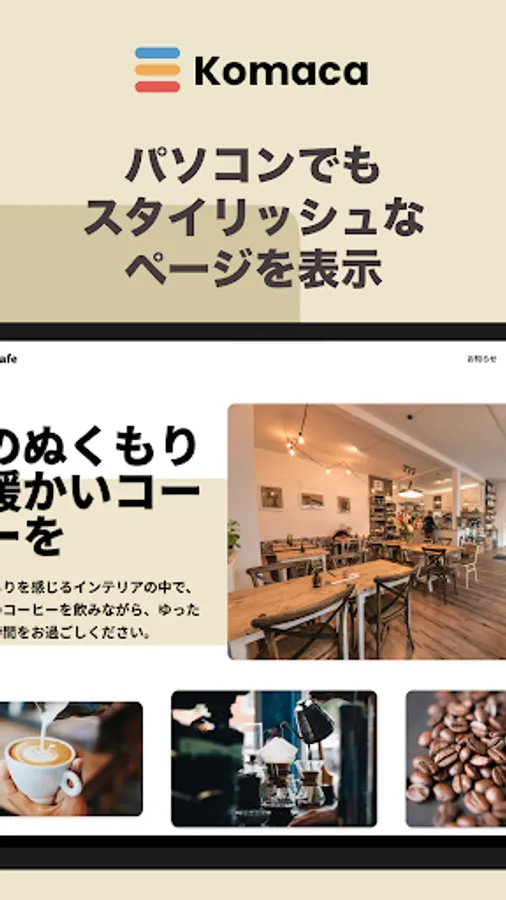 Some people may think that creating a website requires studying, but Komaca will take care of all the technically difficult tasks, so you can create a website with confidence.