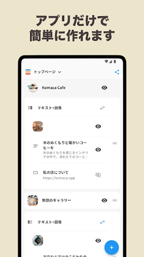You can easily create websites for smartphones, from the official websites of stores and companies to the websites of circles, using just the app.