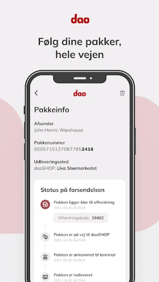Download our app and follow the journey of your packages, find your nearest parcel shop, keep track of both past and future shipments - and much more.