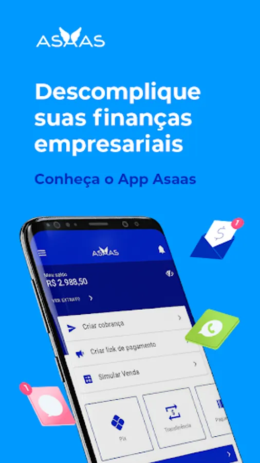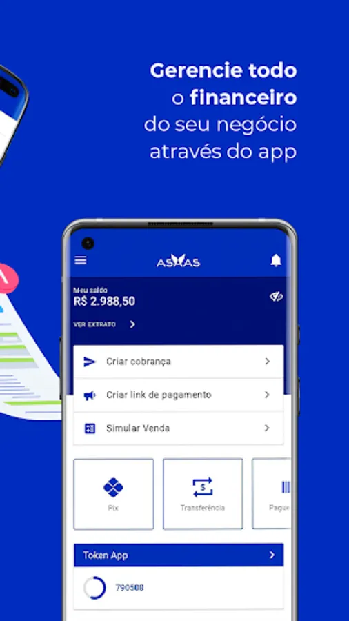 Welcome to Asaas Gestão Financeira, the complete application for companies that want to optimize their finances. With our PJ Digital Account you will have full control over your transactions, charges and payments, all in one place.