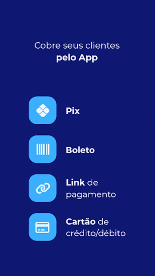 • Charge customers quickly via bank slip, Pix, payment link or credit and debit card;