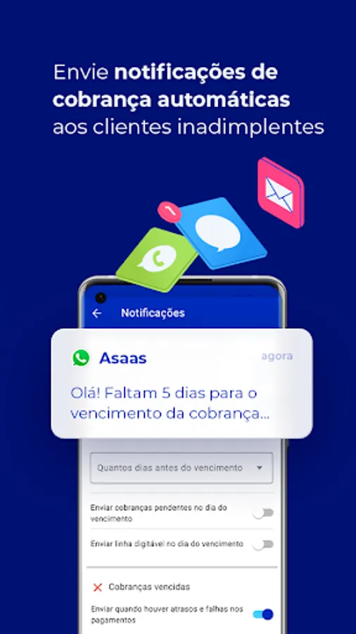 In addition to the benefits of opening a Corporate Digital Account for companies, Asaas makes it possible to issue invoices, issue bills and send billing messages to customers - charge via WhatsApp, email, SMS or voice robot.