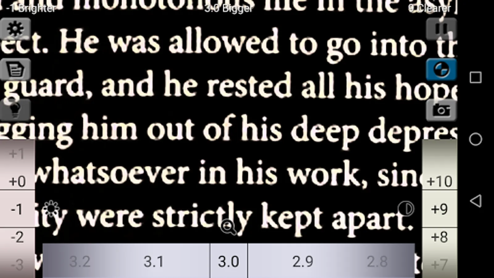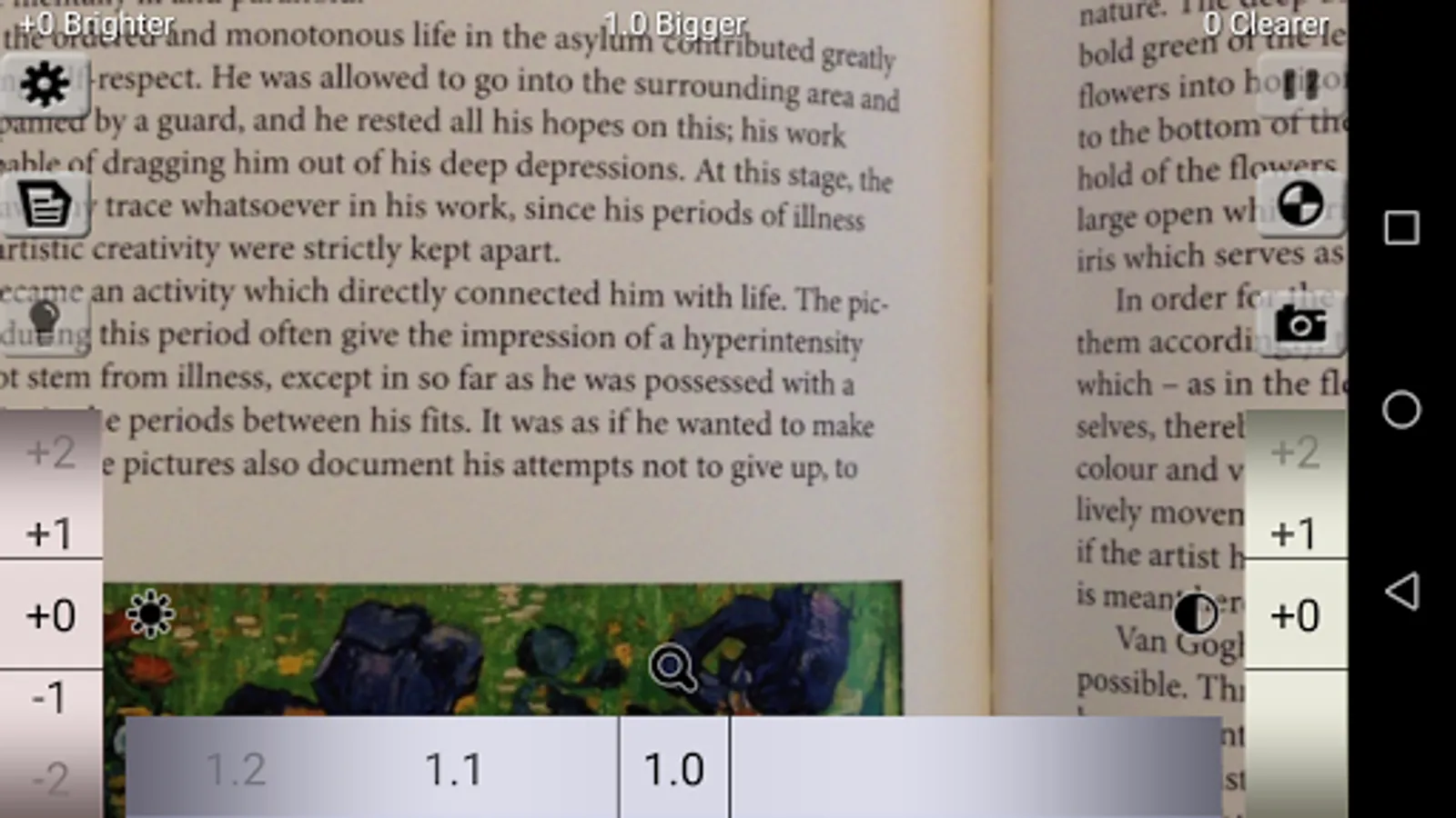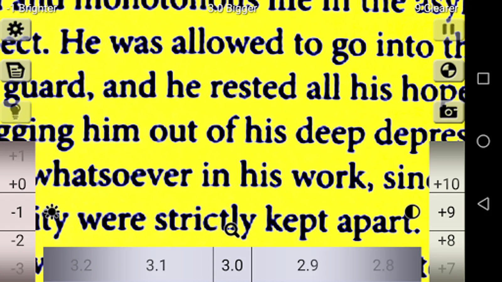 This application helps you to read small letters by making the images bigger, brighter and clearer with scientific color changing methods.