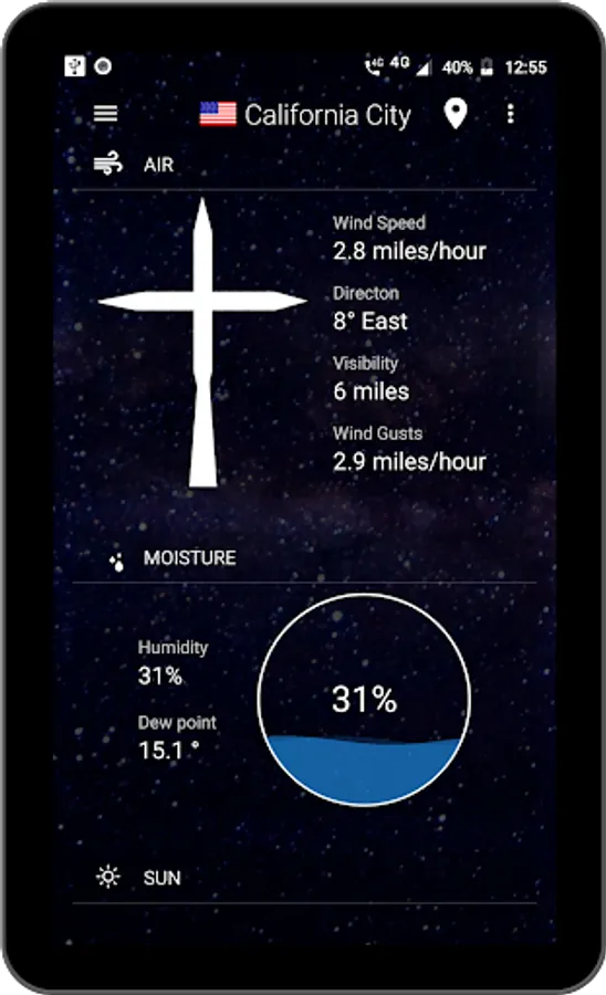 In the city search, users can get an outdoor weather report and humidity for their city.