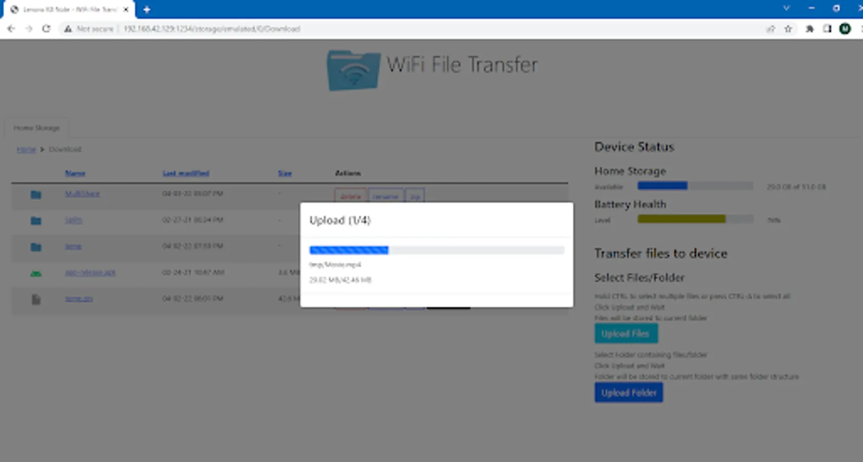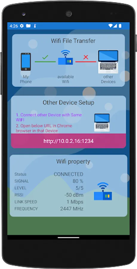 Share Files PC, Mac enable you upload and download files with your Windows PC or MacBook or Mobile Phones without any physical connections or USB connections with the help of WIFI connection. It provides: