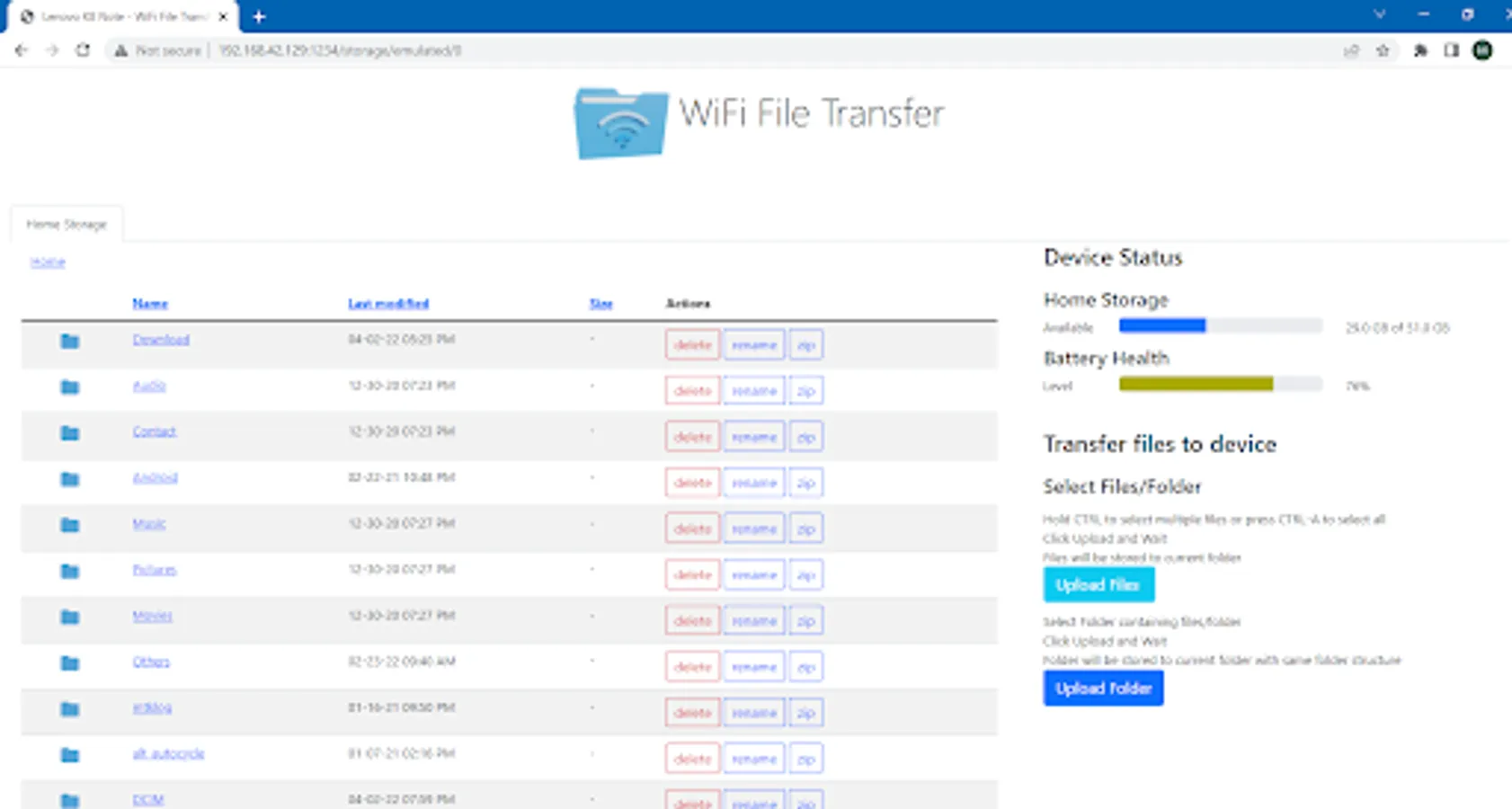 • Delete, rename, zip files using the built-in file manager interface