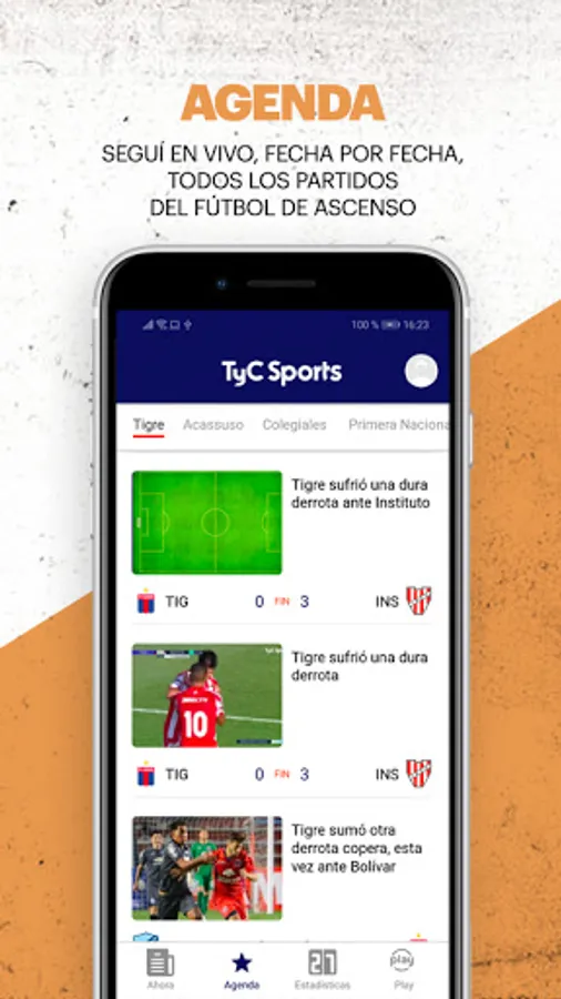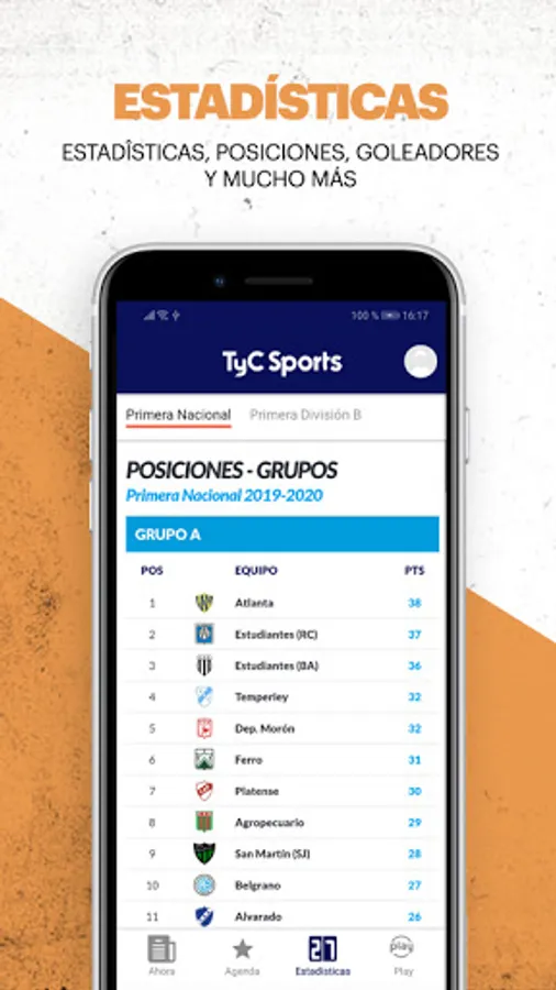 All the football of the promotion in a single APP. All the news and current affairs of the First National and First Division B of Argentine football can be found here. Find out all the news, follow the results minute by minute and watch the matches via streaming And much more!