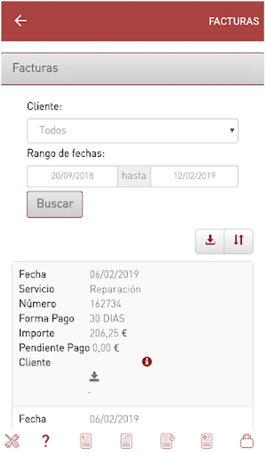 From the same you can access to: invoices, budgets, last attention made in their lifting devices, etc.