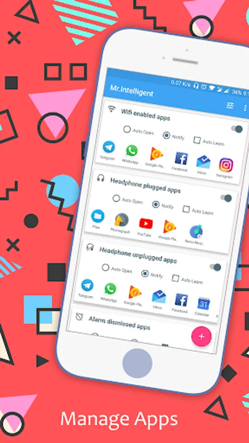 Mr.Intelligent learns your habits and help you to automate your everyday app opening and management and provides you the best possible solution. Personalize and customize the way you open, manage and use your favorite apps! Save time & utilize better app usage & opening!