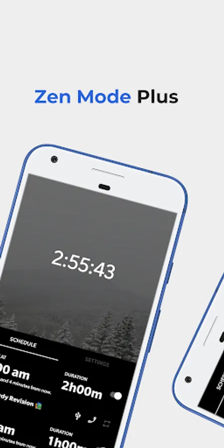 Schedule Zen Mode, set custom duration, finish ongoing Zen Mode whenever you want or get notified before Zen Mode starts or after the finish and so much more with the all in one tool Zen Mode Plus!