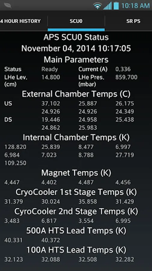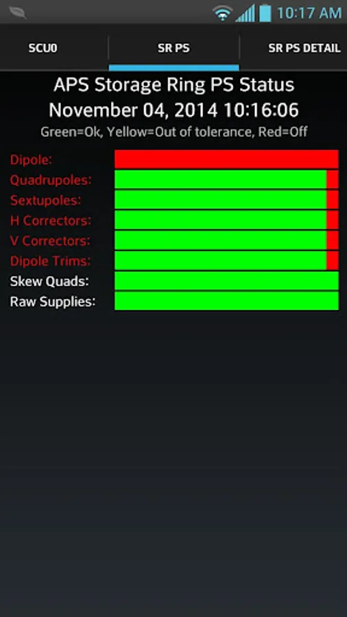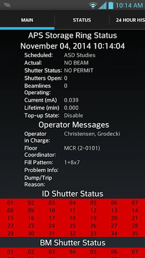 This app provides high-level status information and notifications for the Advanced Photon Source (APS) at Argonne National Laboratory. The information is updated at ~1 minute intervals. Swipe horizontally or use tabs to change views.