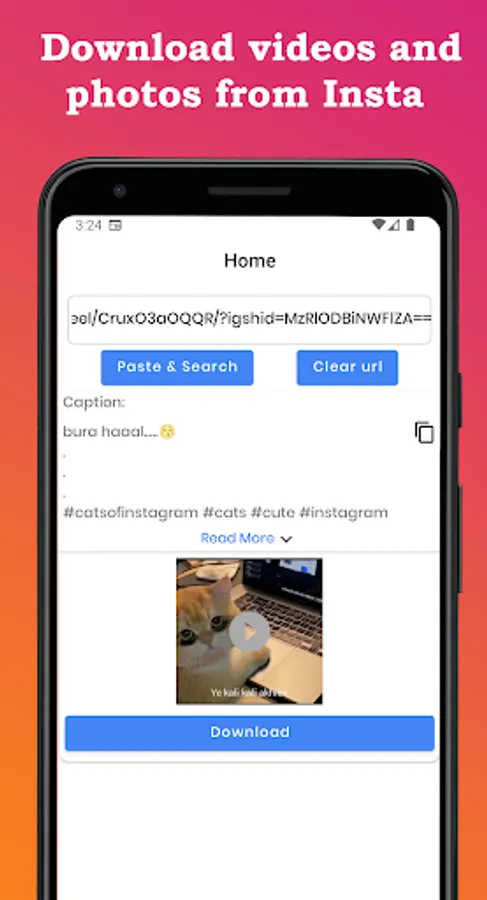 Insta downloader helps you to download and save Insta reels, Videos, Photos , IGTV, Caption & stories in a simple way.