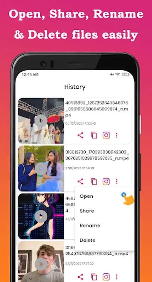 5. Go to history tab and you will see downloaded files there. You can share, rename, preview and delete downloaded files.