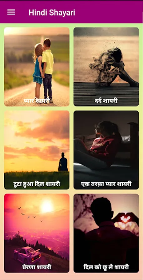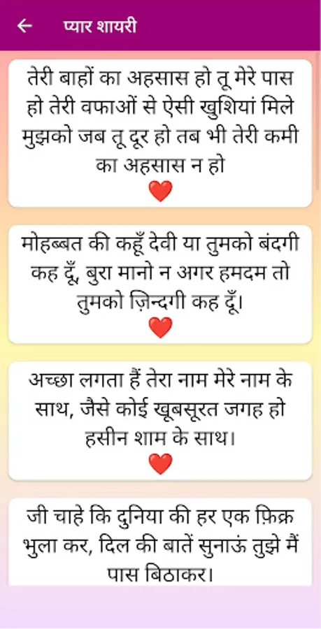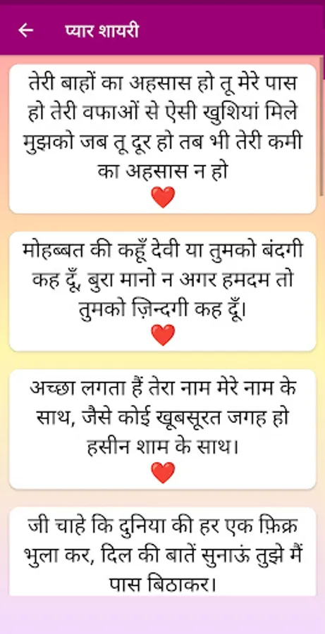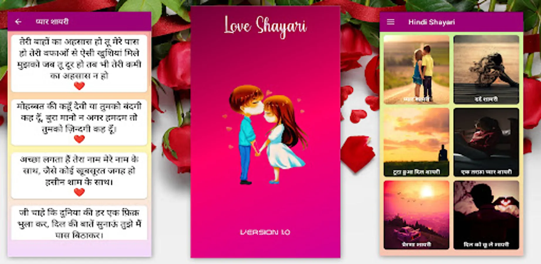 Valentine Day and Love हिंदी शायरी Shayari in Hindi is a completely offline and perfect Hindi app for all type of Shayaris to share with your loved ones in English and Hindi through SMS, Facebook, Whatsapp, email and other social apps. It has very user friendly UI.