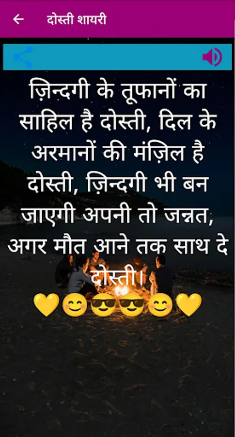 ★ Option to share Shayari message via SMS, Whatsapp and Other Social Apps like Facebook, Google+, WeChat, etc.